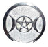 This altar tile is an elegant addition to any altar or sacred space. Made of silver plated brass, it beautifully displays the sacred triple moon symbol.