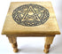 9" x 9" x 8" pentagram ritual altar table, designed to enhance your rituals and altars. Crafted with intricate details, the pentagram symbol radiates energy and intention, making it the perfect centerpiece for your sacred space. Its compact size allows for easy placement in any room, while the sturdy construction ensures it can hold your ritual tools and offerings with grace.