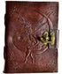 Description:For the whimsical at heart, the Small Fairy Moon leather blank book features the hand-tooled image of a fairy, sitting within the crescent of the moon as though it were a great swing. Contains 240 unlined pages. 6" x 8", (made from goat leather).
