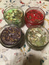 Celebrate the entire year with this beautiful set of handmade Wheel of the Year jar candles! Each candle is approximately 4 oz made with pure soy wax & a bit of beeswax. Each candle connects with a particular season so you'll receive a Spring, Summer, Autumn & Winter jar candle. Each candle will contain herbs & colors connected with that season's magical energies.