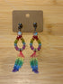 A soft rainbow colored feather earrings